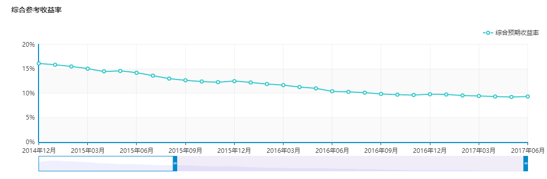 而羊毛党们最关心的收益情况也大为不妙。以2015年为起点我们看到,在至今两年不到的时间里,行业综合收益率已从15%以上下滑到如今的9%左右,下降幅度超过了1/3。而一些超过10%以上收益的平台,则更是被认为是高收益高风险平台而令人恐慌不已。
