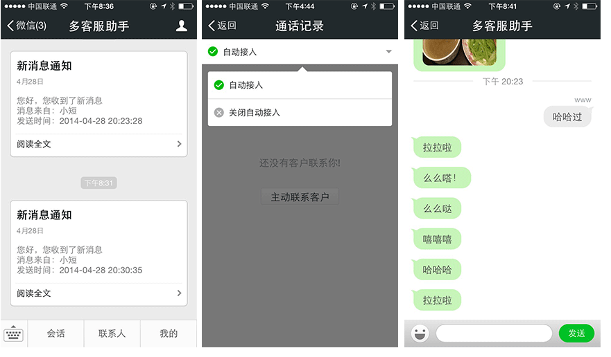选择启用多客服功能后,就可以使用多客服接待,具体操作步骤如下: