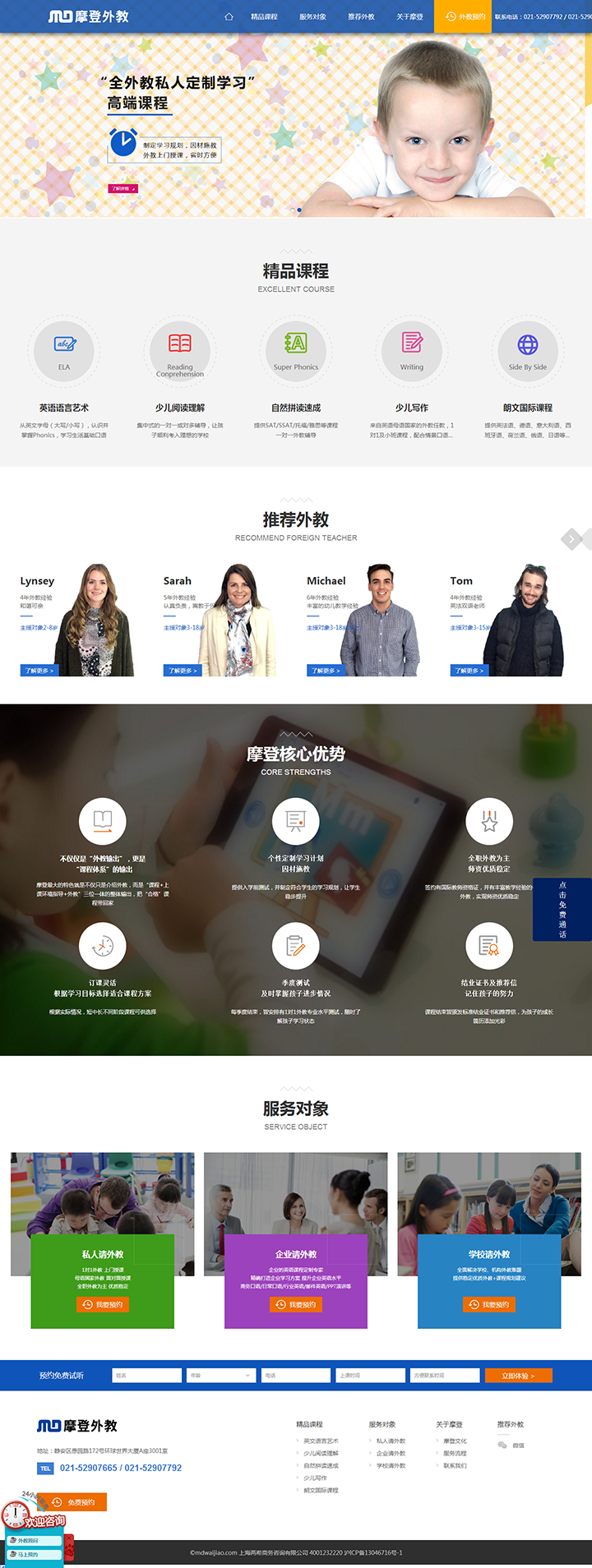 摩登外教隶属于上海两希教育旗下的私人定制教育品牌,是一家致力于为学生提供优质外教及课程的专业教育机构。摩登外教以打造领先“英语定制教育机构”为目标,采用业界最优秀教师队伍,根据每位学生具体情况,个性化为学生提供最专业的帮助。自成立以来,摩登外教致力于研究上海国际学校双语学校英文入学考试及学校英文课程,教学质量也得到了上海众多国际学校、双语学校师生的认可,已成功协助上千名学生提高英文水平,进入理想学校。