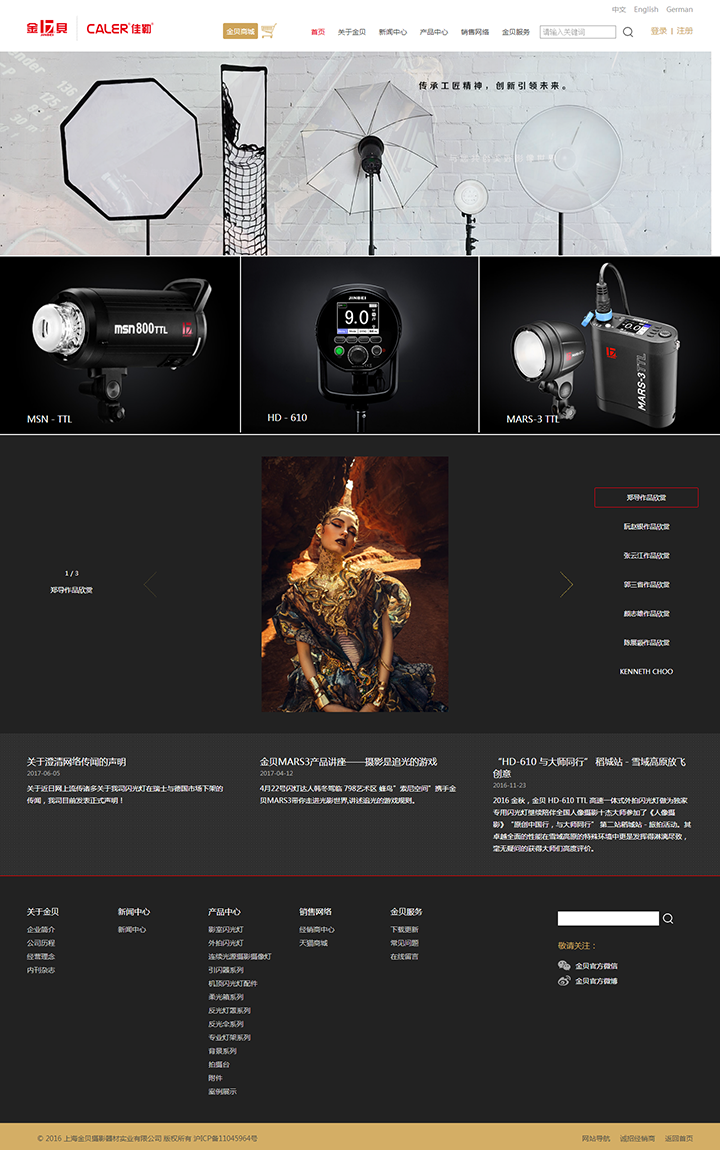 二十多年来公司坚持以市场为导向,以创新、高科技研发为核心竞争力。经营专业摄影器材包括:影室闪光灯 、外拍闪光灯、机顶闪光灯、LED 持续光源摄影摄像灯、引闪器等系列产品。依托国际前沿技术及现代化工厂、专业素质员工、规模化生产和管理;延续品牌的匠人精神、精工制造的传统;金贝已成长为在国际闪光灯领域有重要影响力的企业。