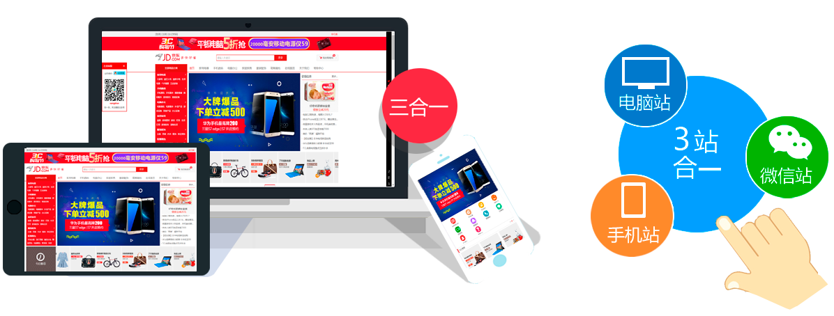 拥有诸多特色而又实用的强大功能,轻松打造不凡的电脑站+手机站+微信 三合一商城