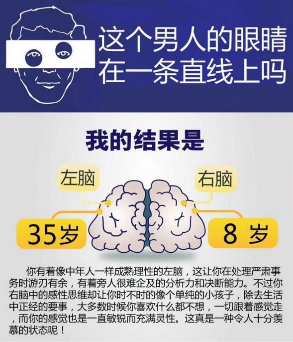 号称左脑右脑的这种的测试,之前就很多其实。比如一张动图的舞者,用你看到的旋转方向来判断你是左脑型还是右脑型。早在几年前果壳的谣言粉碎机上就被证伪了。所以在这个测试中,那么程序员要么写一个不科学的简单算法,要么随机。毕竟没有人给做这个网页的程序员提供到底如何计算左右脑年龄的正确的复杂算法(这个算法估计在科学界还没有)