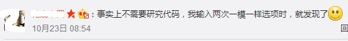 正当对自己的测试结果沾沾自喜时,突然在微博中看到有位程序员发了这个